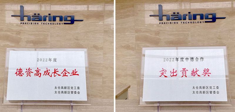 Haering’s site in the Taicang High-Tech Zone was recognized as a “German High Growth Enterprise” for 2022. In addition, the Haering Kindergarten received the “Outstanding Contribution Award” for Sino-German cooperation.